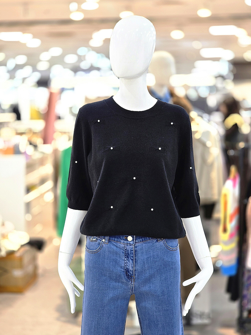 단정한 라운드넥 디자인으로 데님이나 스커트와 매치하기 좋아 데일리룩부터 세미 캐주얼룩까지 활용도가 높은 아이템입니다.