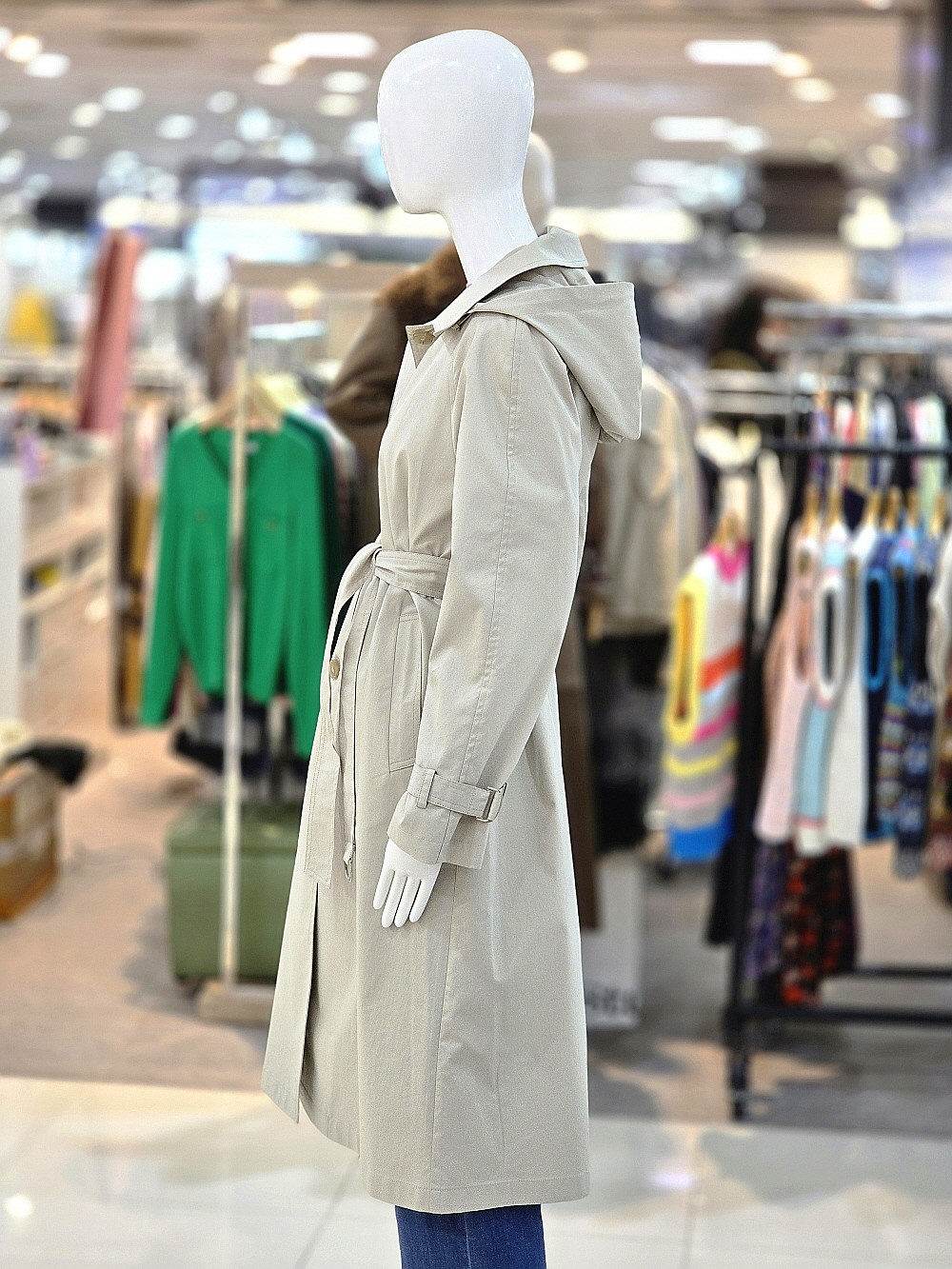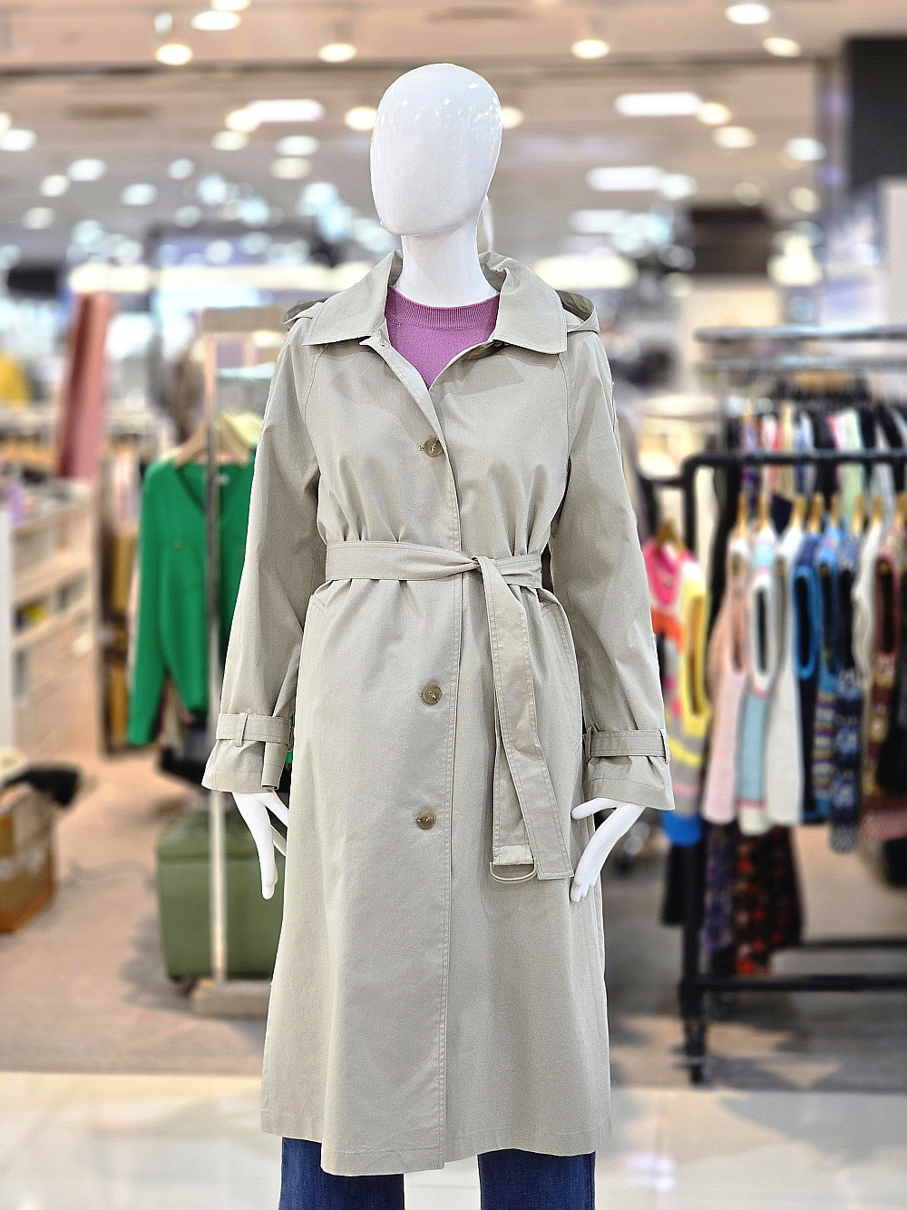 클래식한 트렌치 디자인에 후드 디테일을 더해 캐주얼하면서도 우아한 분위기를 연출합니다.