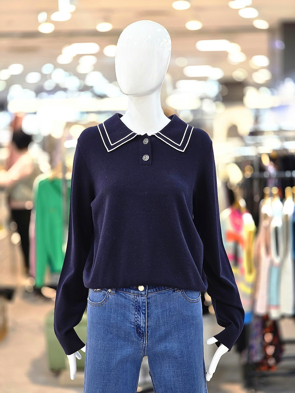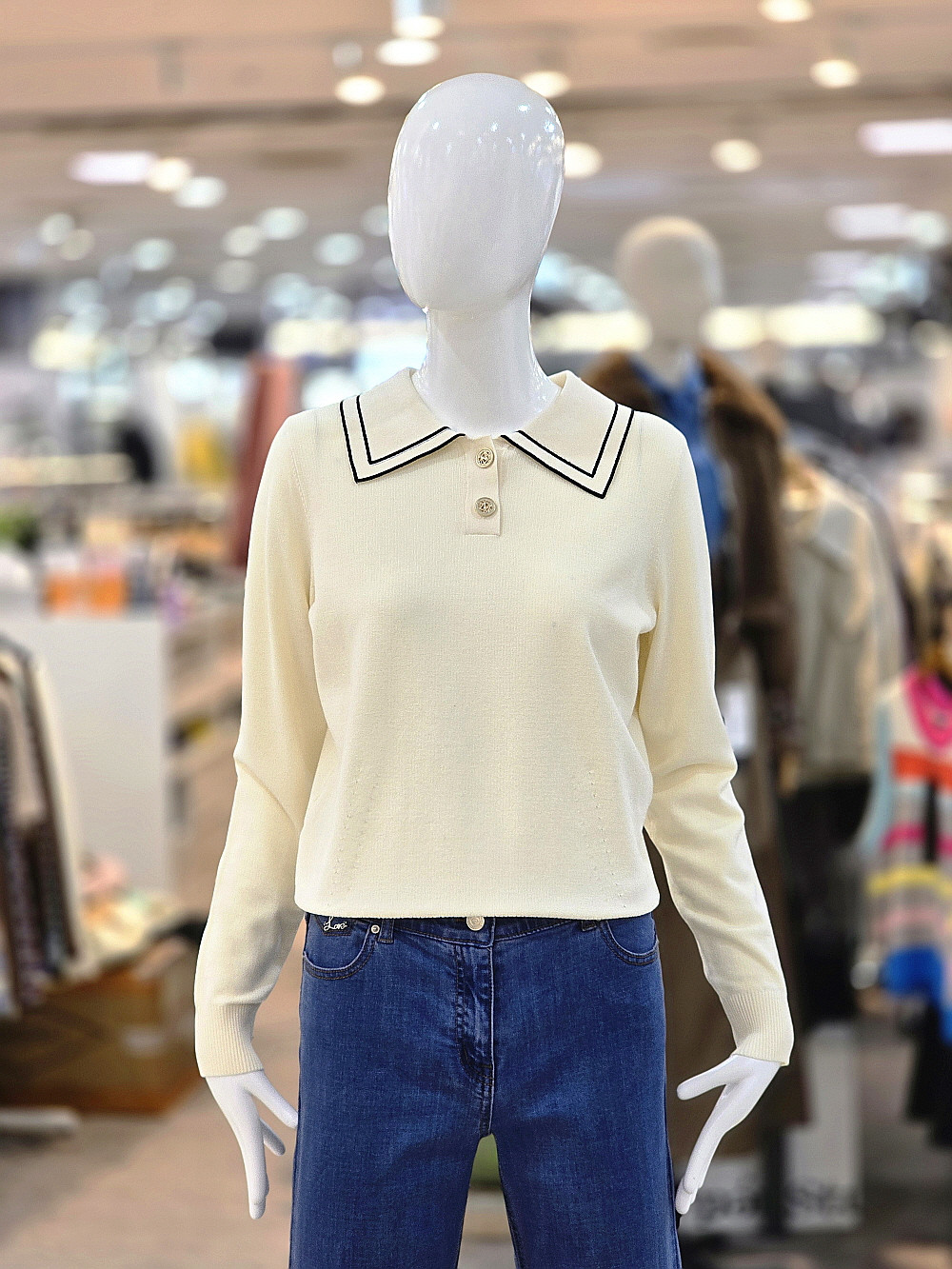 카라 라인에 더해진 블랙 배색 디테일이 클래식하면서 세련된 분위기를 연출하며,