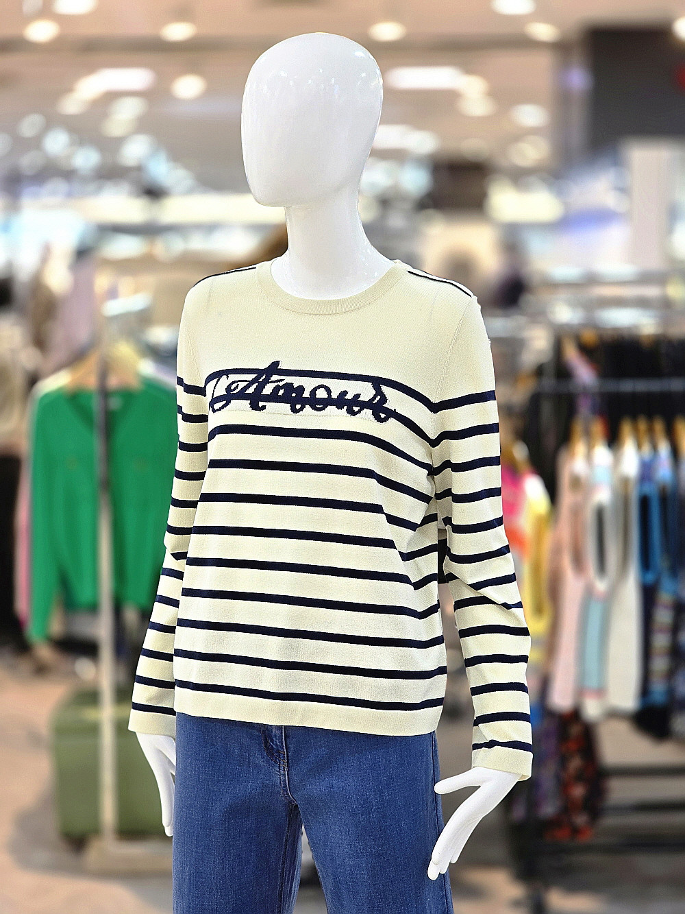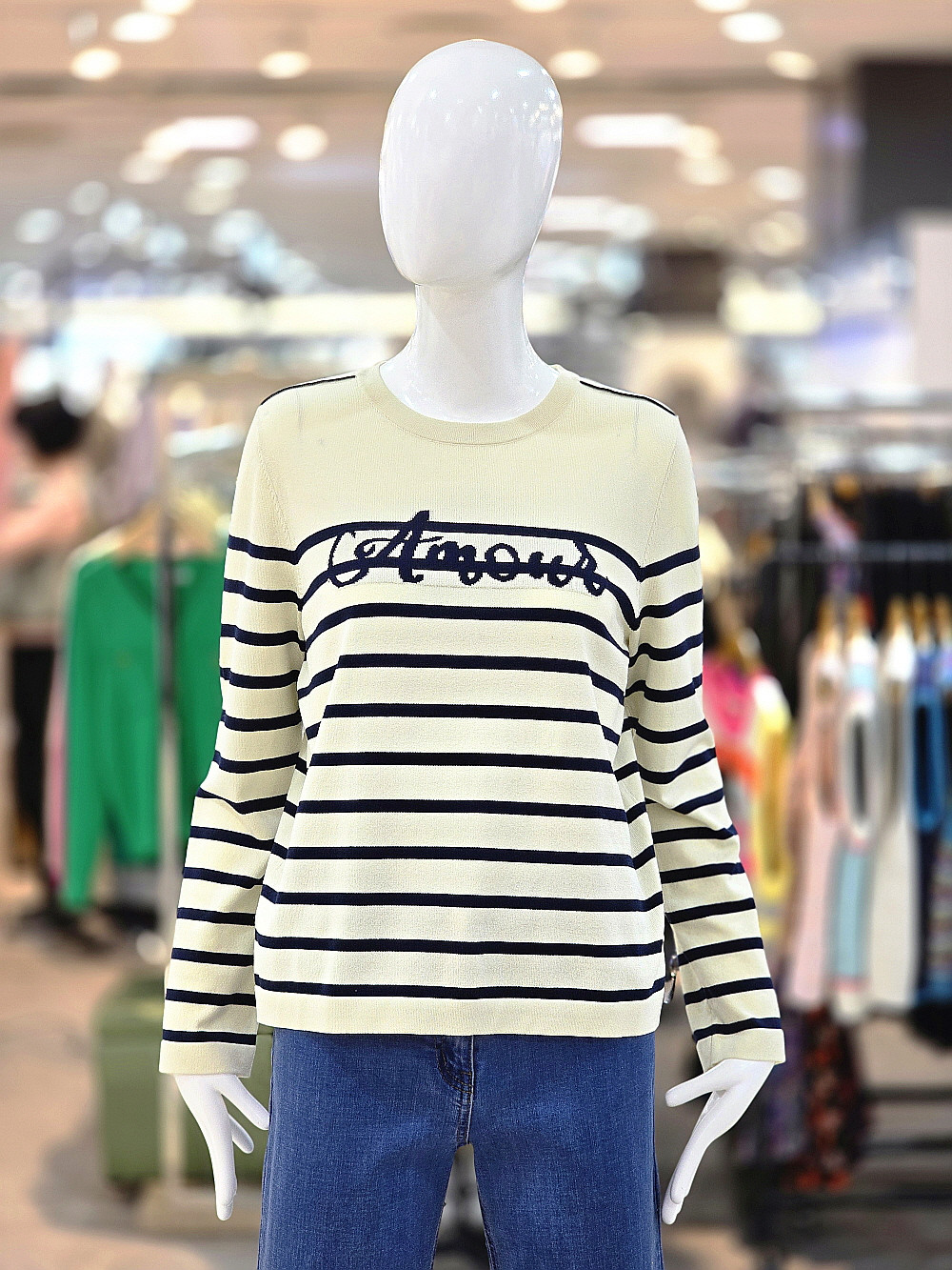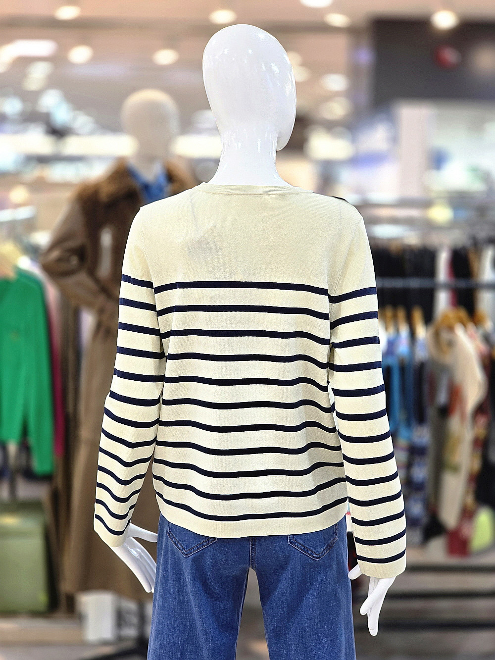 캐주얼하면서도 세련된 분위기를 연출하는 꼼빠니아 스트라이프 니트입니다.