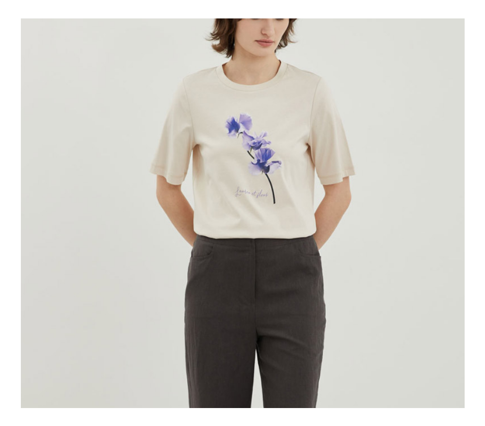 면100%의 케주얼한 라운드 티셔츠 입니다