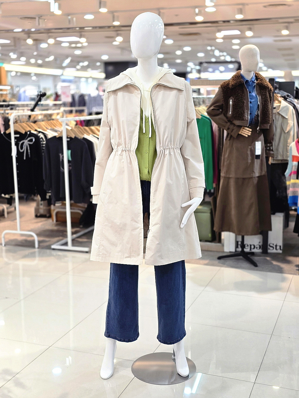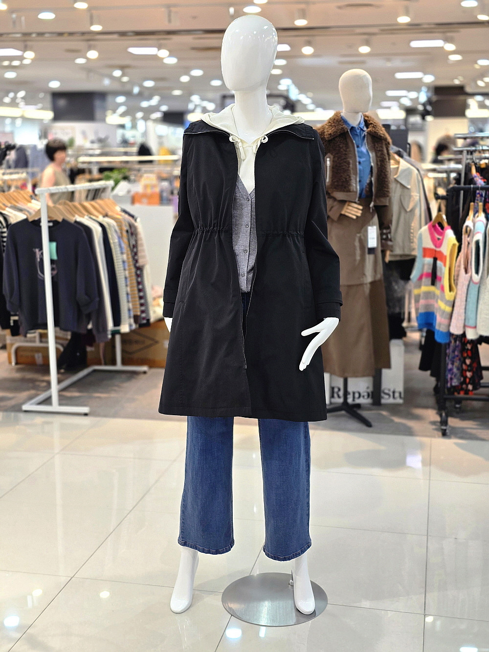 집업 스타일로 간편하게 착용할 수 있으며 허리 셔링 디테일이 자연스러운 실루엣을 연출해 줍니다.