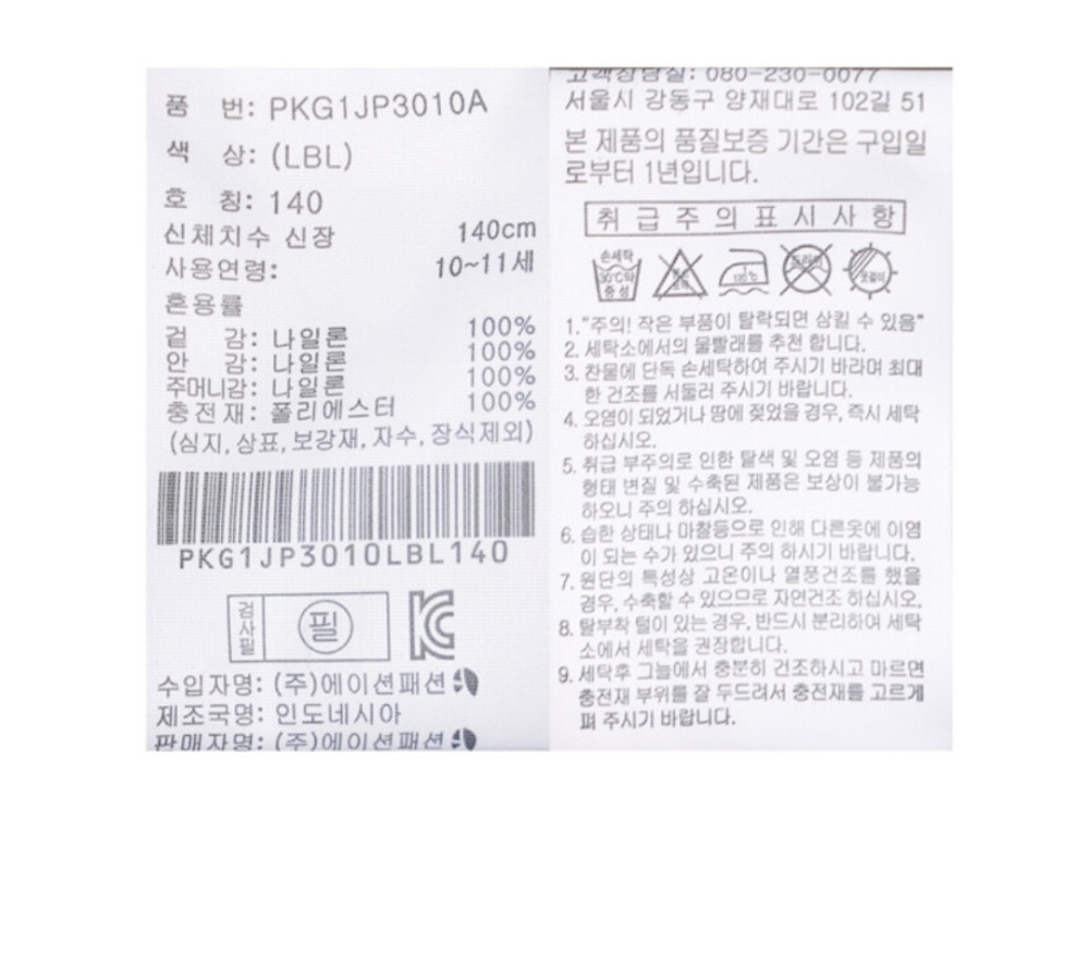 [행복한백화점][폴햄키즈]공용경랑패딩pkg1jp3010