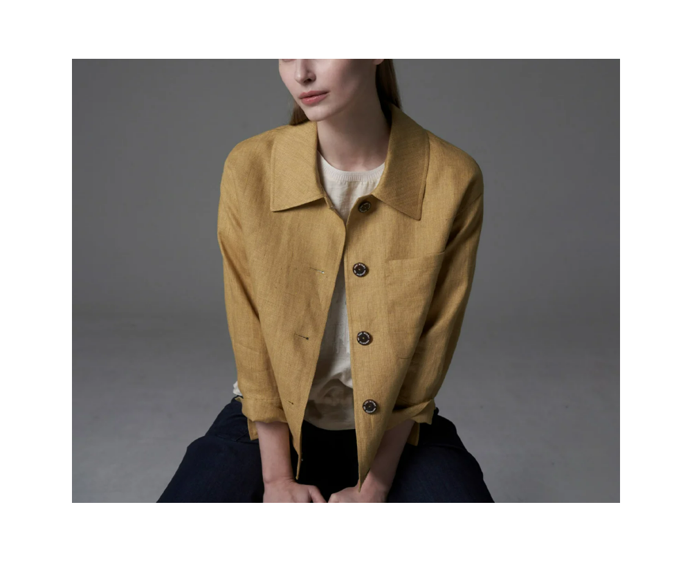 기본카라의 여유러운 핏으로 부담없이 착용가능한 린넨혼방 자켓입니다