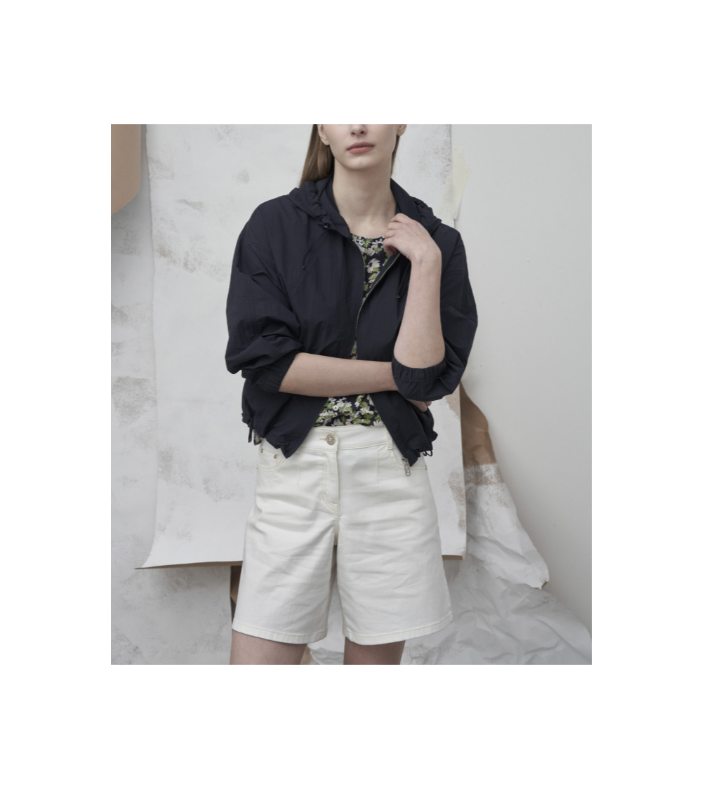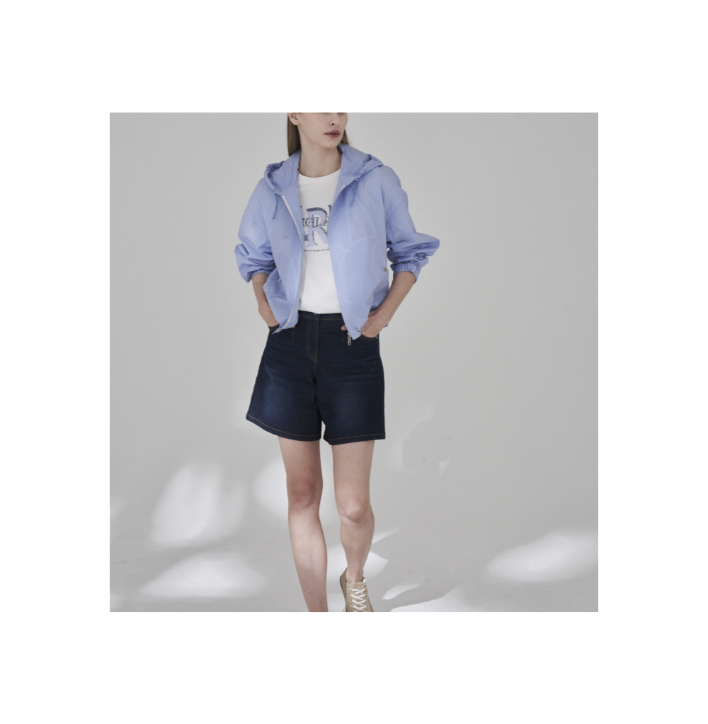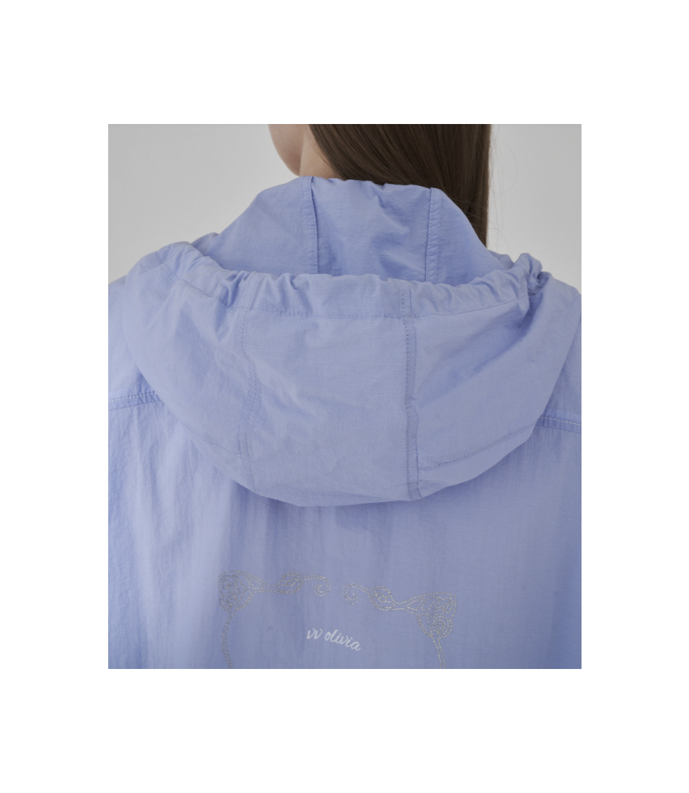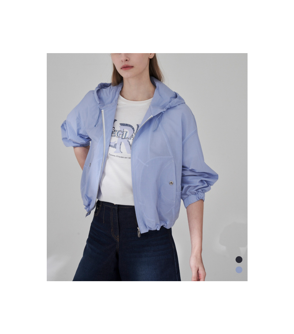 등판 프린트가 포인트인 홑겹 후드 점퍼 입니다
