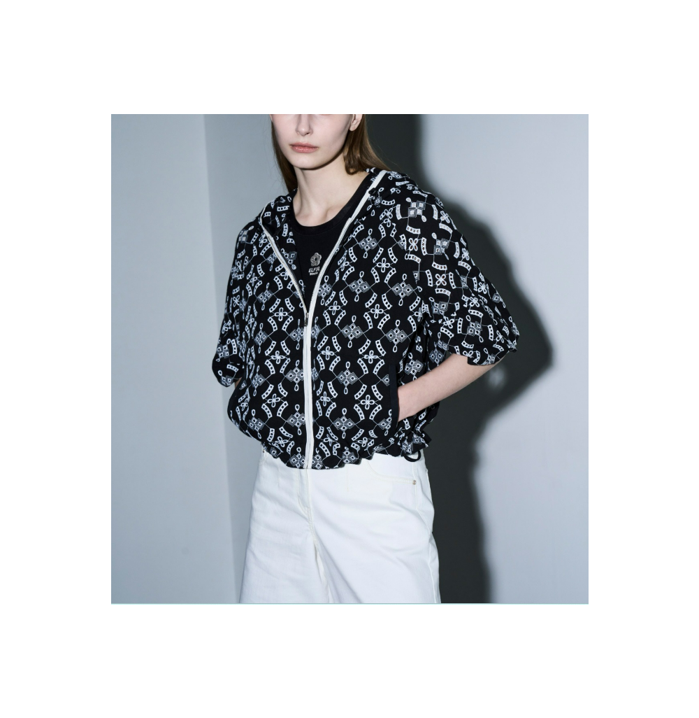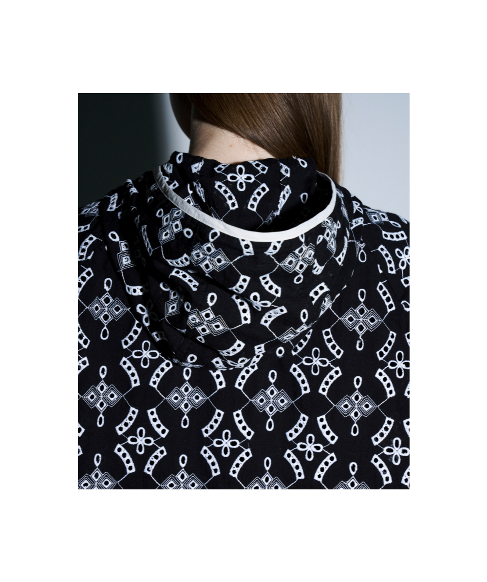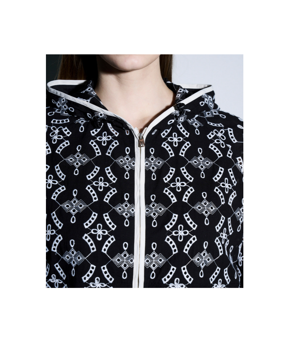 자수원단이 포인트인 후드 집업점퍼 입니다