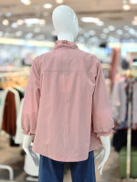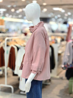 넥 라인의 프릴 디테일이 부드러운 분위기를 더해주며, 여유 있는 실루엣으로 편안한 착용감을 제공합니다.