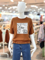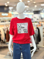유니크한 캐릭터 프린팅이 포인트가 되는 니트 반팔 탑입니다.
