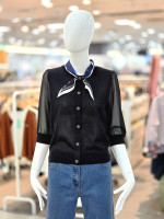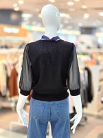 부드러운 니트 소재와 은은한 시스루 소매 디자인이 조화를 이루어 여성스러운 분위기를 강조해주며,