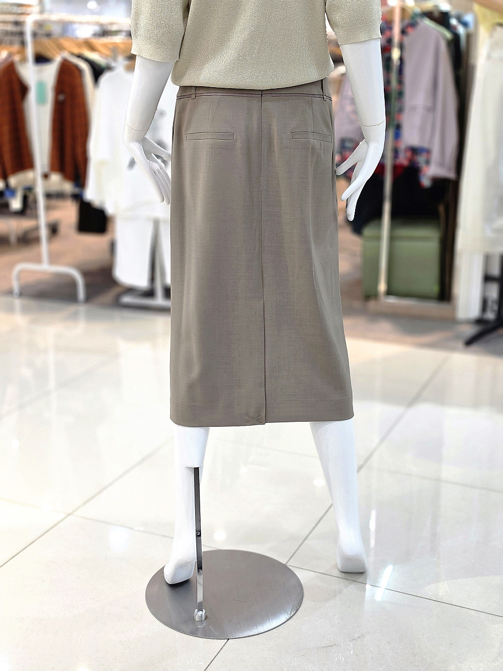 깔끔한 실루엣이 돋보이는 미디 기장 스커트로 단정하면서도 세련된 스타일을 완성해주는 아이템입니다.