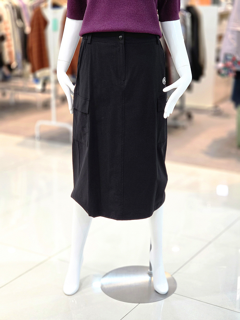 실용성과 스타일을 동시에 잡은 포켓 디테일 미디 스커트입니다.