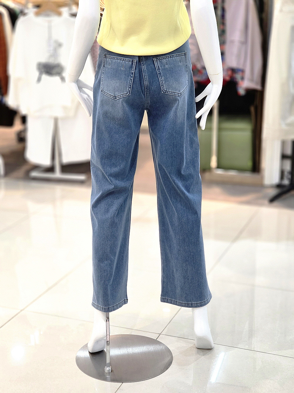 자연스럽게 떨어지는 세미 와이드 핏이 돋보이는 데님 팬츠입니다.
