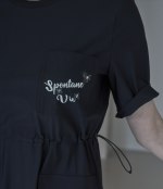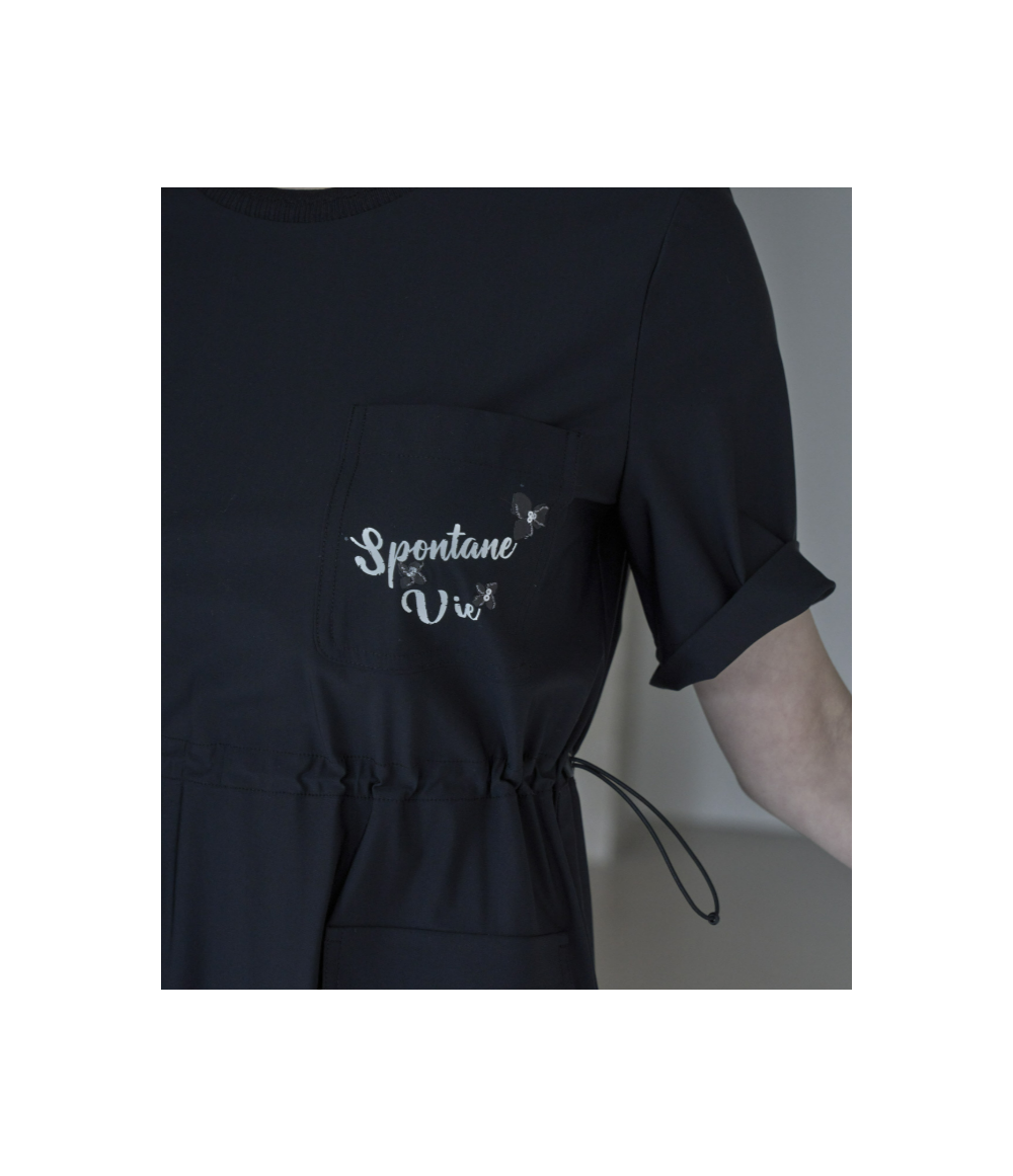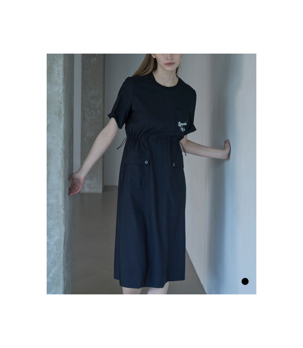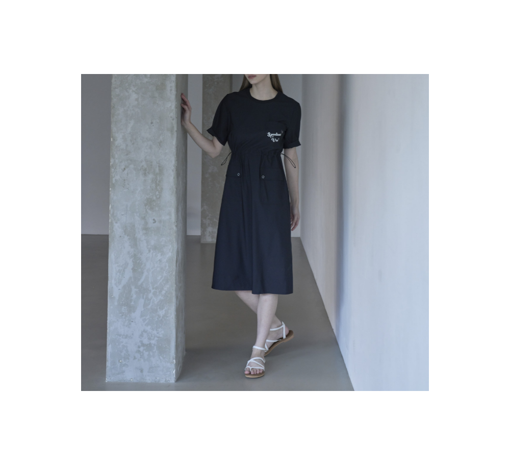 허리에 스트링이 들어가 사이즈 조절이 용이한 H라인 원피스 입니다