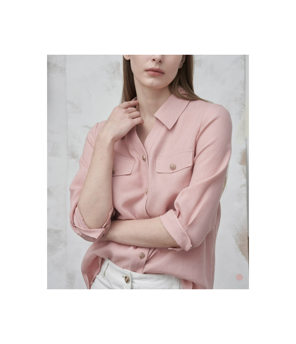 Y넥 카라에 버튼으로 포인트를 준 블라우스 입니다