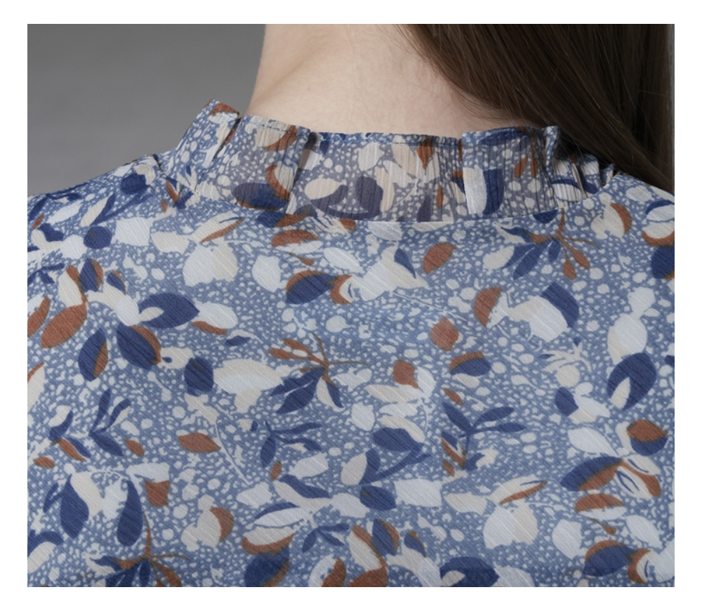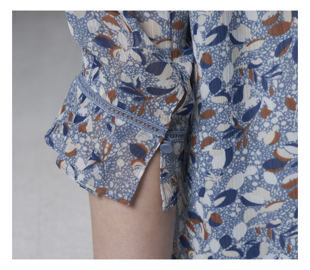 잔잔한 올오버 프린트로 화사하게 입을수 있는 쉬폰 블라우스 입니다