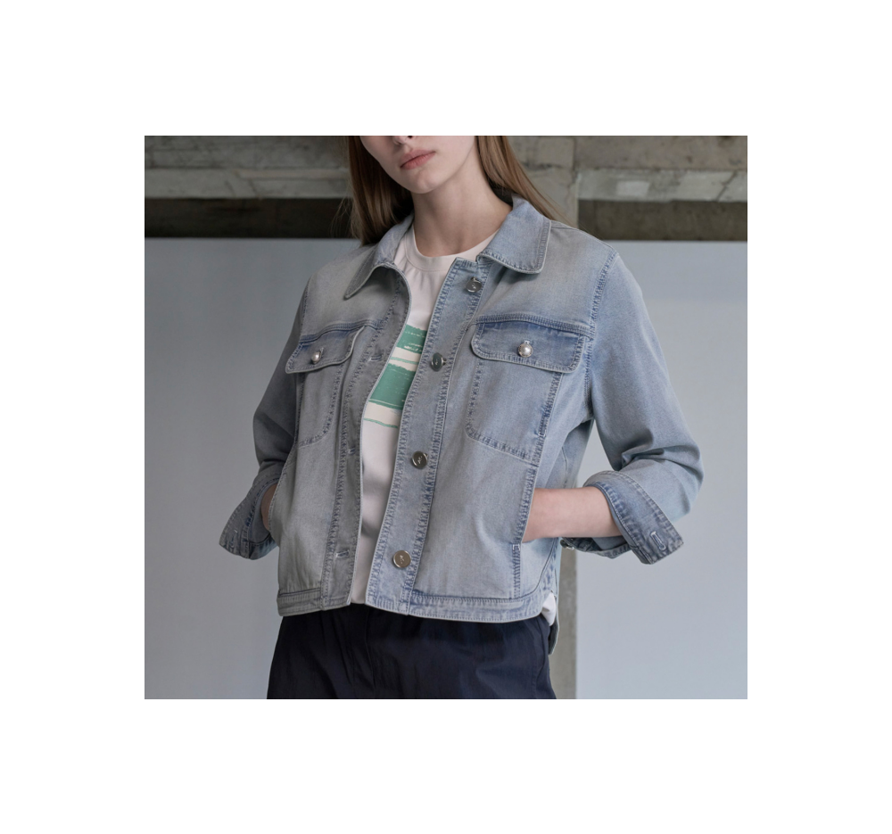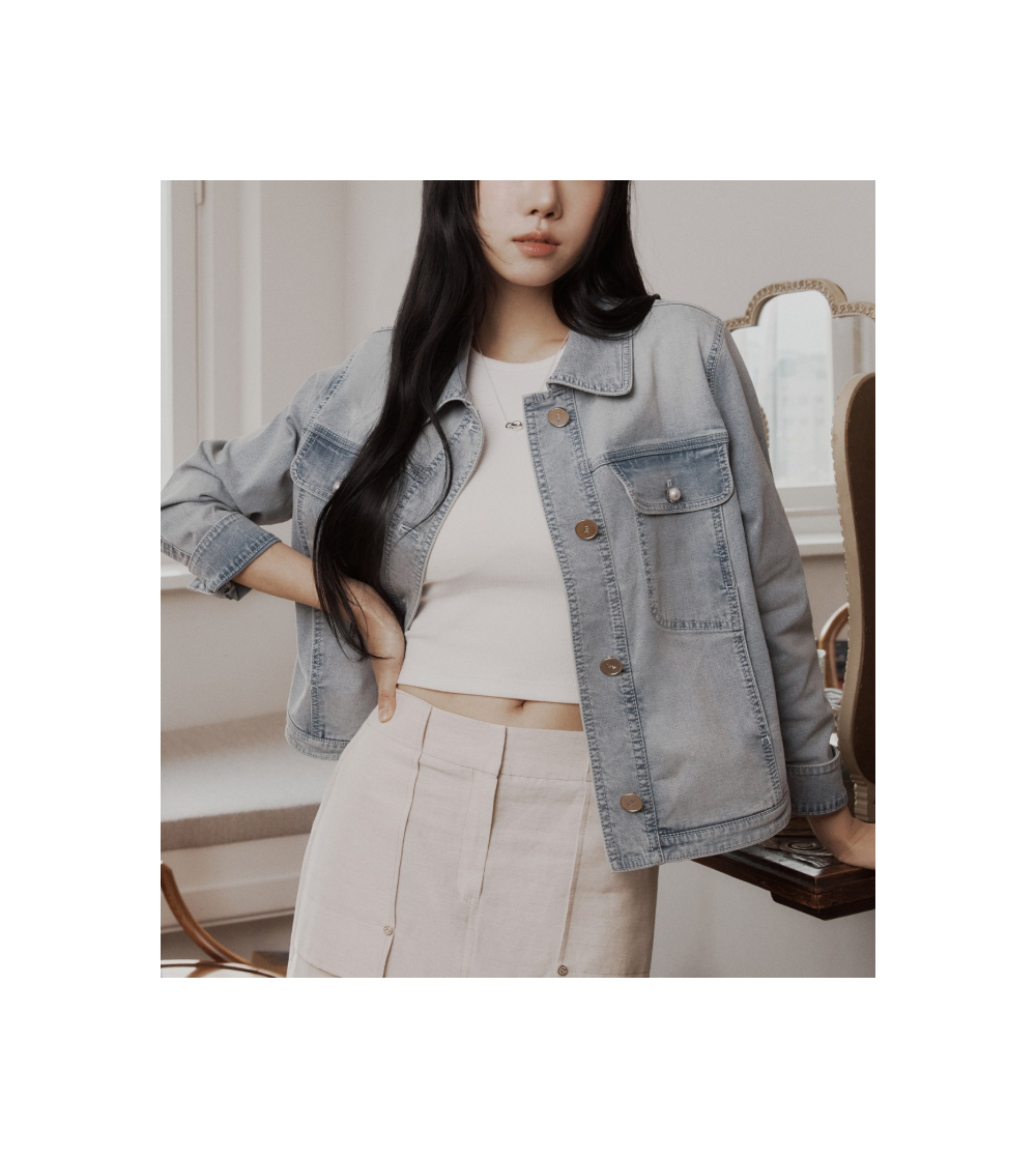 워싱이 돋보이는 간결한 디자인으로 섬세하게 완성한 데님 자켓 입니다