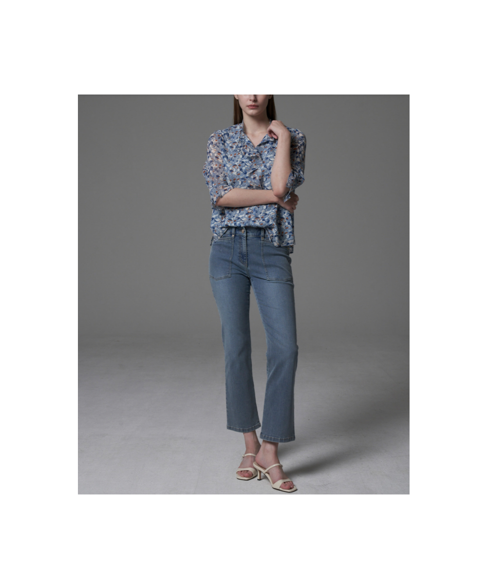 슬림하게 떨어지는 붓츠컷 데님 팬츠 입니다