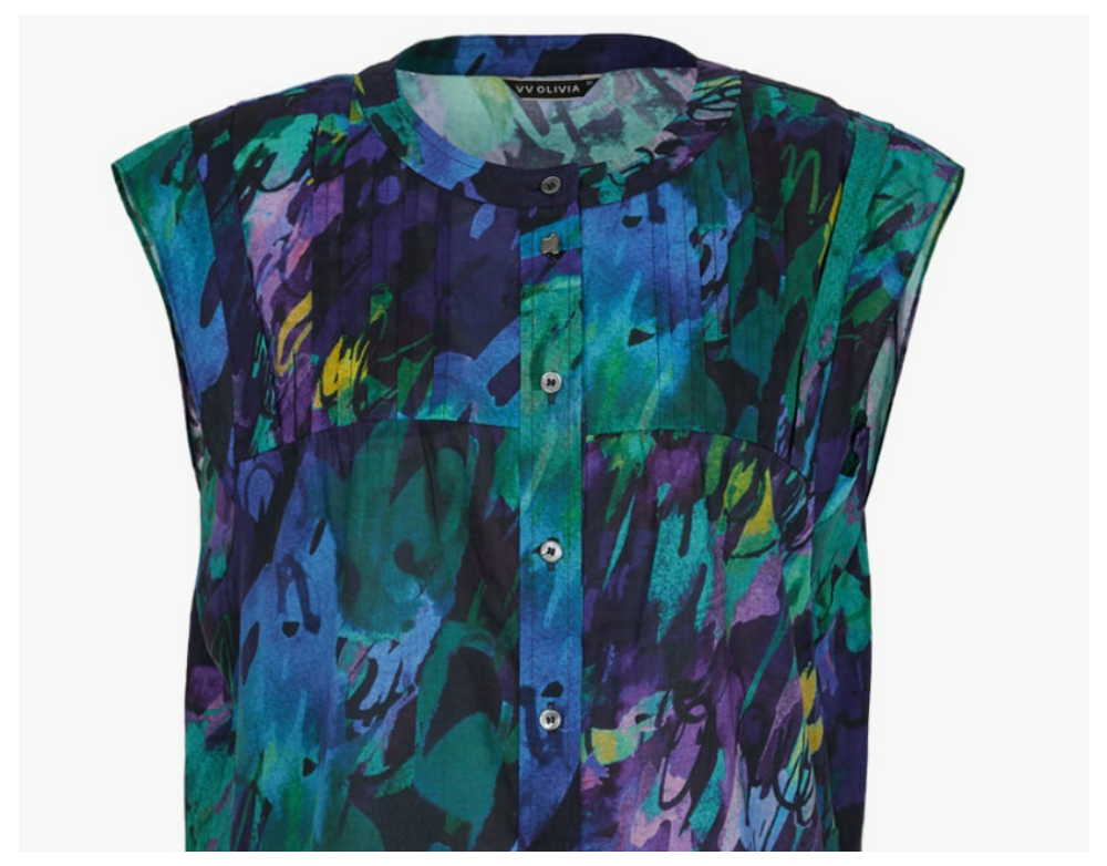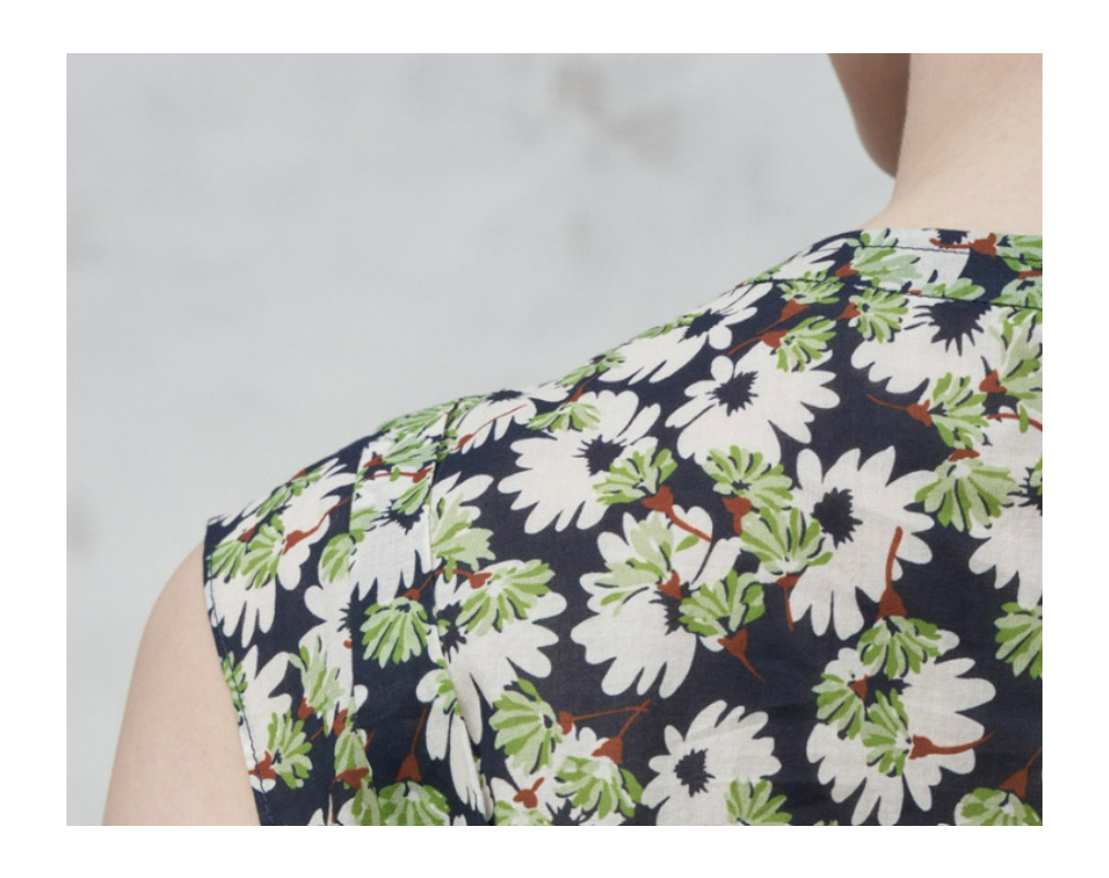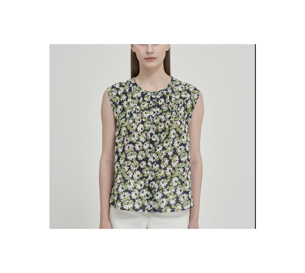 전판 프린트 소재로 화사하며 민소매로 가볍게 연출이 가능합니다