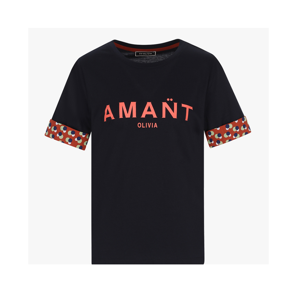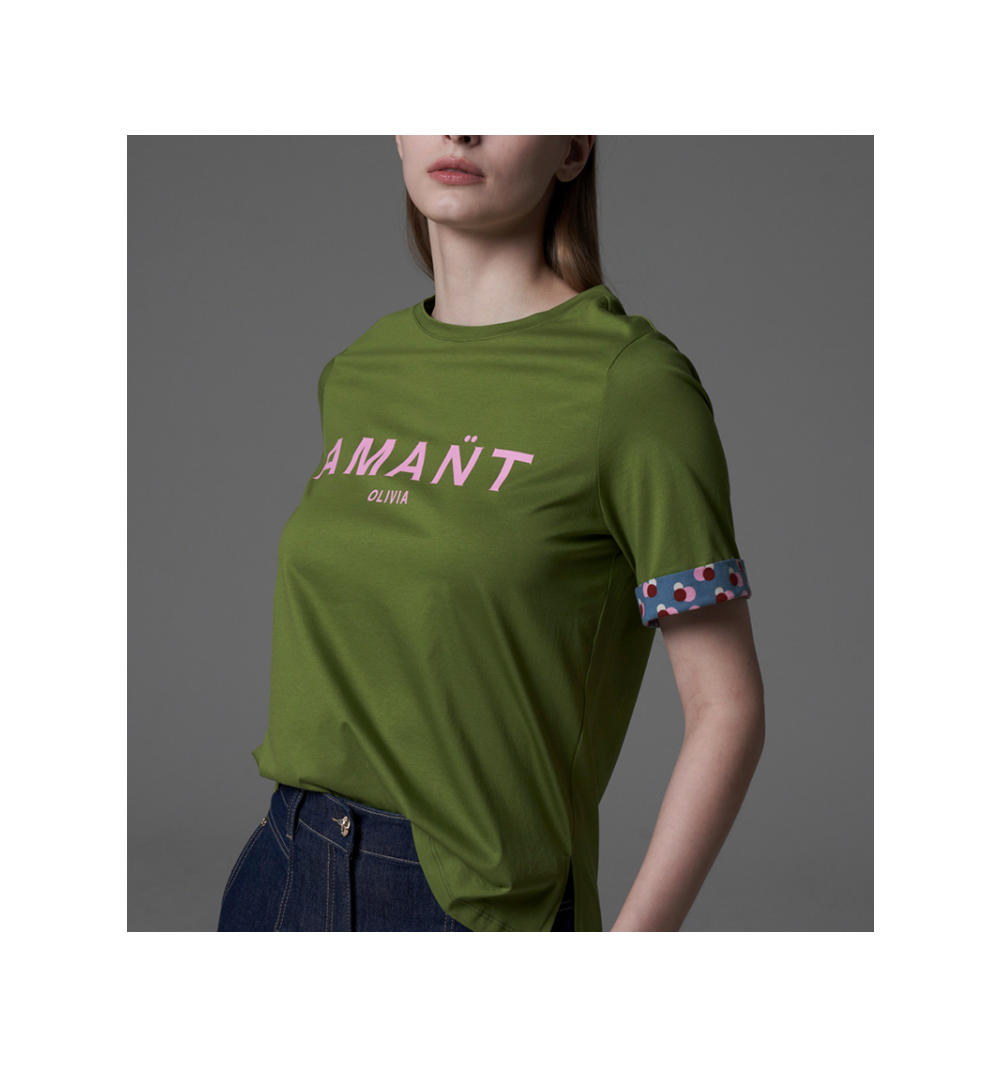 기본 실루엣의 배색원단 반팔 티셔츠 입니다