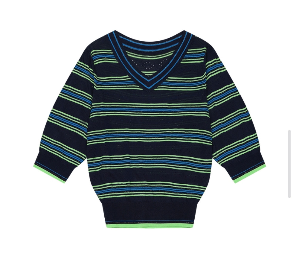 브이넥 니트티,스트라이프니트,스트라이프패턴,영케주얼,일상룩,데일리룩,30대,40대