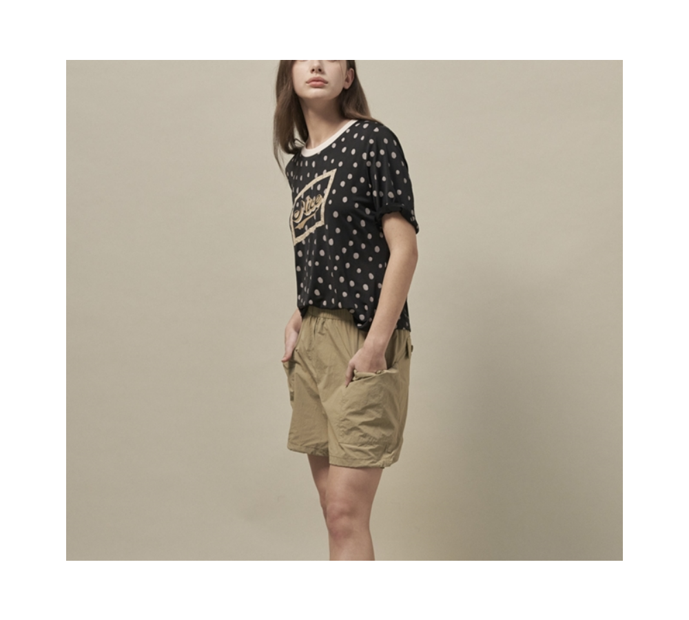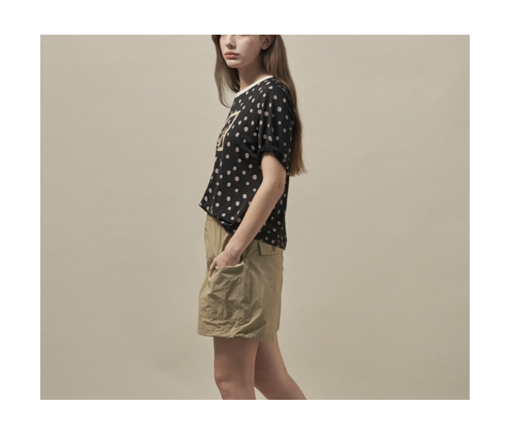 번진듯한 효과의 도트 프린팅의 모티브 포인트를 준 티셔츠 입니다