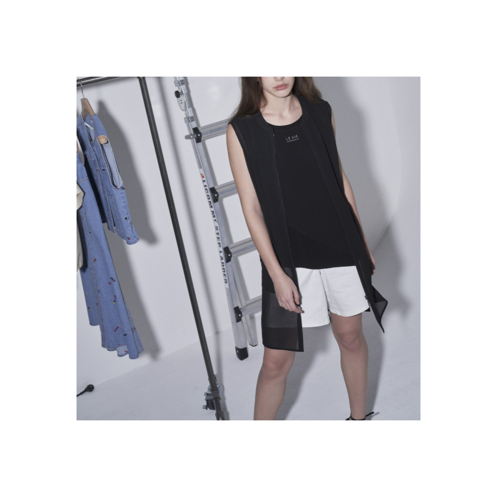 여성스러운 스타일의 가벼운 집업 조끼 입니다